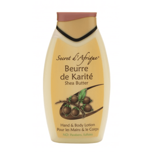 Secret d’Afrique Shea Butter 500 ml: for hand and body. No parabens and sulphates. A moisturizing body lotion based on pure Shea Butter, specially formulated for dry and sensitive skin. It is very effective for the protection of epidermis. It’s easily absorbed into the skin giving a soft and smooth feeling. It is non-greasy lotion and can be used day and night.