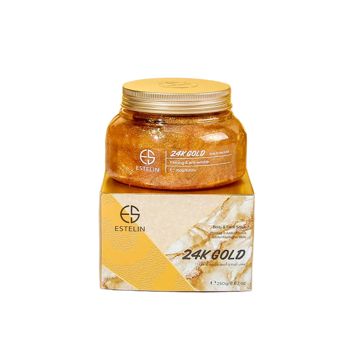 Benefits : This 24K gold body and face scrub that absorbs right into the skin, leaving it glowing and silky-smooth. Its natural formula provides antioxidant protection, has a gentle polishing effect that smooths away dead skin cells, and clarifies clogged pores without drying out the skin. Helps reduce the appearance of fine lines and wrinkles, impurities, acne marks and dark spots while renewing the skin’s surface for a brighter, more even skin tone. Firming & anti-wrinkle youthful radiance skin